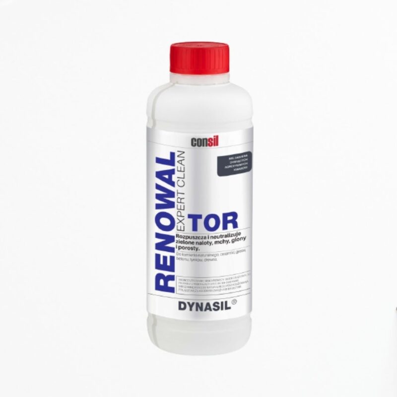 Preparat do zwalczania porostu glonów, mchów i grzybów DYNASIL RENOWAL TOR jest wydajnym, wodorozcieńczalnym koncentratem nie zawierającym żrących kwasów, zasad, chloru i rozpuszczalników. Bezpieczny dla wszystkich powierzchni, nie pozostawia osadów, może być stosowany bez spłukiwania. preparatem przeznaczonym do zwalczania i usuwania wszelkich zanieczyszczeń pochodzenia roślinnego takich jak: mchy, glony, pleśń i grzyby. Działa zapobiegawczo, chroni przed rozwojem mikroorganizmów i porostem zielonych osadów.